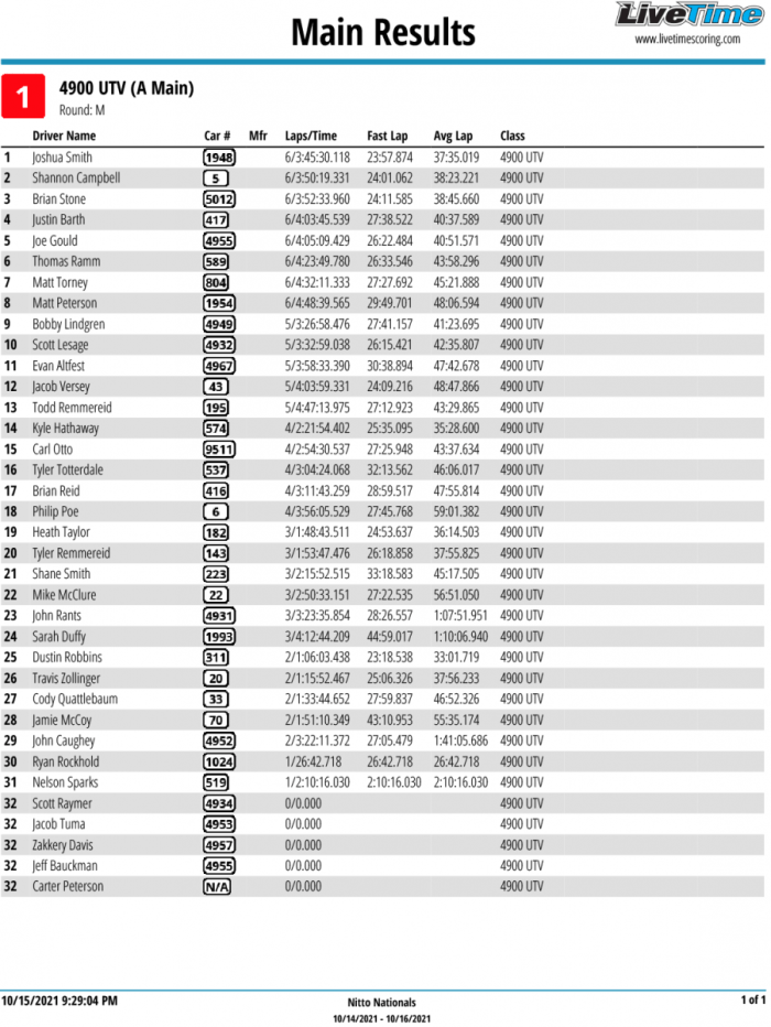 I want to give a sincere thank you to everyone that helped me get this far and make my rookie season successful with an Eastern Series #10 placement for all 4900 class UTVs.